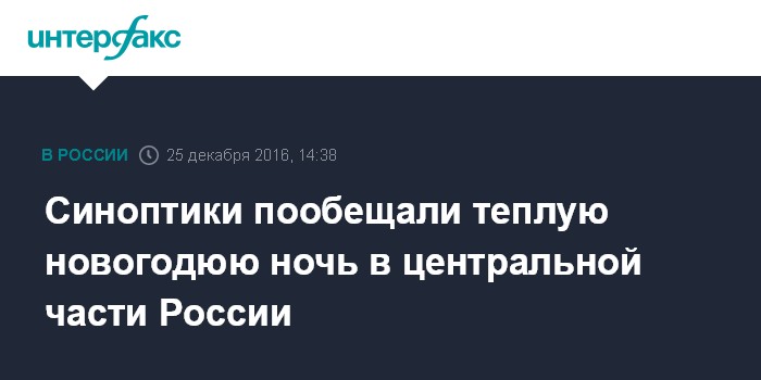 "Все-таки новогодняя ночь должна быть с двузначными отрицательными значениями, то есть, минус 10 - минус 15 - вот это новогодняя ночь, - сказал метеоролог. - А тут мы все-таки прогнозируем, что погода будет умеренно теплая - выше нормы на 4-5 градусов. Это все-таки заметное отклонение".