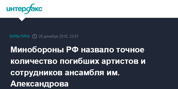 Минобороны РФ назвало точное количество погибших артистов и сотрудников ансамбля им. Александрова