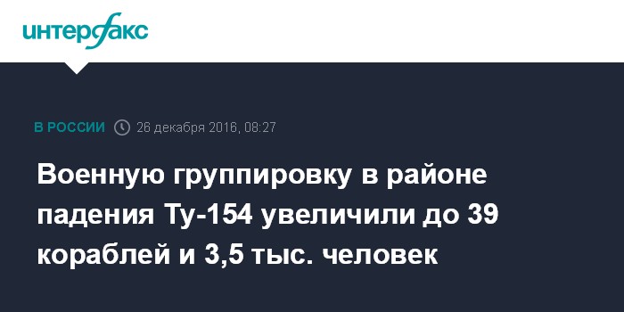 Военную группировку в районе падения Ту-154 увеличили до 39 кораблей и 3,5 тыс. человек