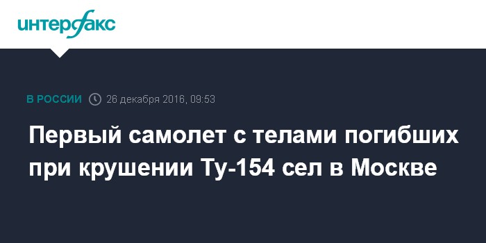 Первый самолет с телами погибших при крушении Ту-154 сел в Москве