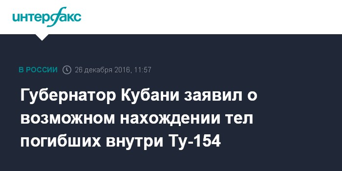 Губернатор Кубани заявил о возможном нахождении тел погибших внутри Ту-154