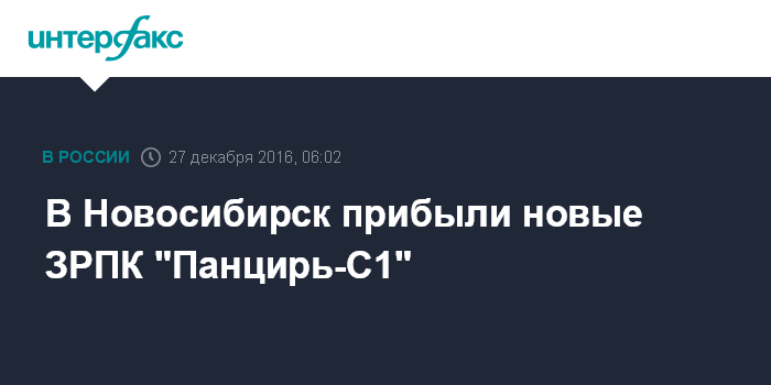 "Новейшие зенитные ракетно-пушечные комплексы (ЗРПК) "Панцирь-С1" прибыли в Новосибирск, где заступят на боевое дежурство по защите важных военных и промышленных объектов в зоне ответственности Центрального военного округа. "Панцирь-С1" усилят систему противовоздушной обороны Западной Сибири", - сказал Рощупкин.