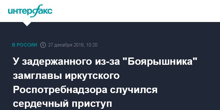 У задержанного из-за "Боярышника" замглавы иркутского Роспотребнадзора случился сердечный приступ