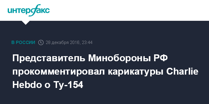 Москва. 28 декабря. INTERFAX.RU - В Минобороны России прокомментировали опубликование французским журналом Charlie Hebdo карикатуры на авиакатастрофу Ту-154 в Сочи.