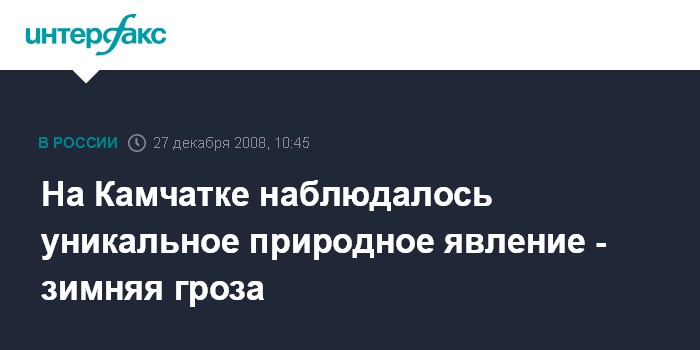 "Зимняя гроза - это уникальнейшее природное явление. На Камчатке оно наблюдается в среднем 1 раз в 25 лет" - сообщила агентству дежурный синоптик камчатского Гидрометеоцентра Алла Чканова.