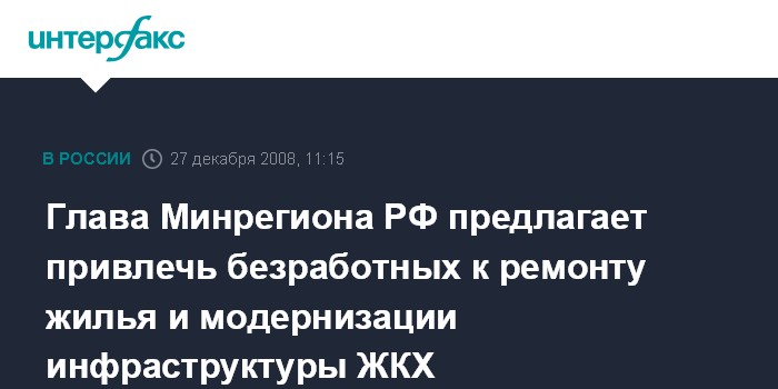 Глава Минрегиона РФ предлагает привлечь безработных к ремонту жилья и модернизации инфраструктуры ЖКХ