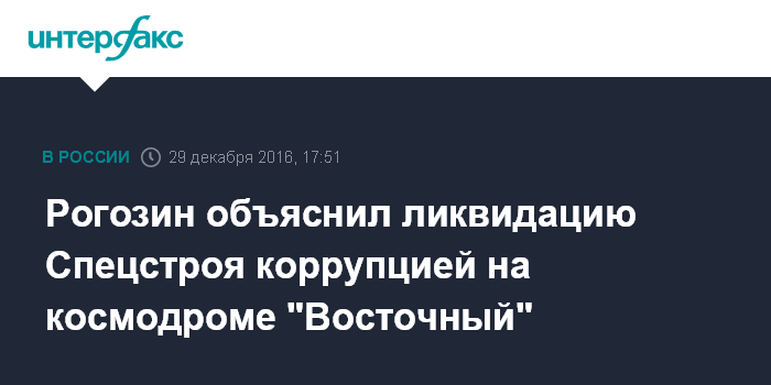 Рогозин объяснил ликвидацию Спецстроя коррупцией на космодроме "Восточный"