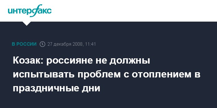 "Срывов поставок энергетических услуг потребителям допустить нельзя. Сейчас складывается непростая экономическая ситуация из-за глобального финансового кризиса, и люди лишаются работы, и лишать их тепла недопустимо", - заявил Козак в субботу на селекторном совещании с регионами по вопросам прохождения осенне-зимнего периода 2008-2009 гг. предприятиями ЖКХ и хода реализации мер по стимулированию развития рынка жилья.