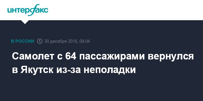 Самолет c 64 пассажирами вернулся в Якутск из-за неполадки
