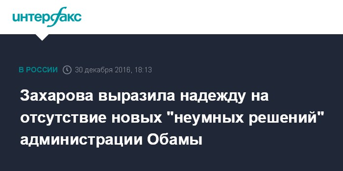Захарова выразила надежду на отсутствие новых "неумных решений" администрации Обамы
