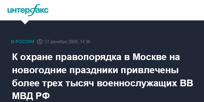 Москва. 27 декабря. INTERFAX.RU - Военнослужащие Внутренних войск МВД России будут ежедневно обеспечивать правопорядок в Москве во время новогодних и Рождественских праздников, заявил журналистам в субботу заместитель главкома Внутренних войск (ВВ) МВД РФ, начальник управления по работе с личным составом ВВ генерал-лейтенант Сергей Топчий.