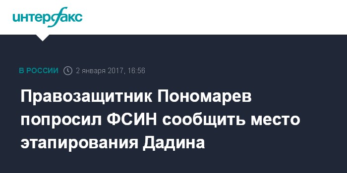 5 декабря пресс-секретарь карельского УФСИН Виталий Фефелов сообщил "Интерфаксу", что Дадина переводят в колонию другого региона. Куда именно, Фефелов не уточнил, отметив, что не имеет права раскрывать такую информацию.