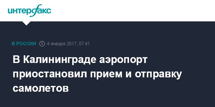 Москва. 4 января. INTERFAX.RU - Калининградский аэропорт "Храброво" начнет свою работу с задержкой на 4 часа, сообщили "Интерфаксу" в диспетчерской службе аэрокомплекса.