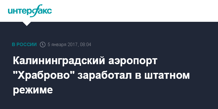 Москва. 5 января. INTERFAX.RU - Аэропорт "Храброво" в Калининграде возобновил свою работу в штатном режиме, сообщила "Интерфаксу" пресс-секретарь главы региона Валерия Родина.