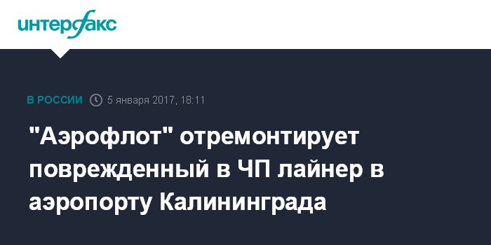 "Сейчас коллеги из компании "Аэрофлот" везут специальное оборудование из Варшавы. Сейчас (оно - ИФ) двигается в направлении Калининградской области. Они будут принимать решение относительно того, где его ремонтировать", - сказал он.