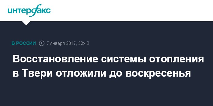 Москва. 7 января. INTERFAX.RU - Подача горячей воды в дома для восстановления системы отопления после коммунальной аварии на магистральном теплопроводе в Твери отложена, сообщает в субботу пресс-служба городской администрации.
