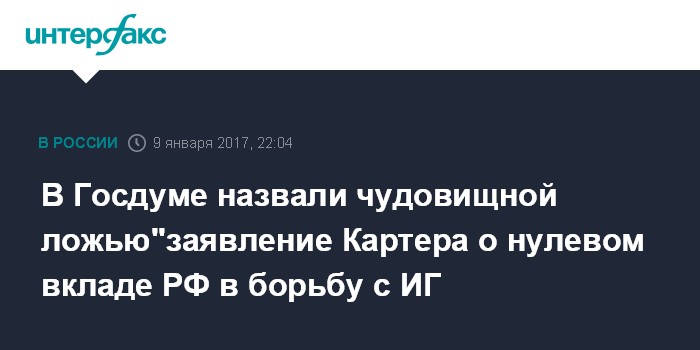 В Госдуме назвали чудовищной ложью"заявление Картера о нулевом вкладе РФ в борьбу с ИГ