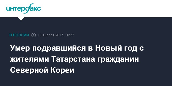 Москва. 10 января. INTERFAX.RU - Пострадавший в массовой драке в поселке Бирюли Высокогорского района Татарстана гражданин Северной Кореи скончался в больнице. "Вчера он скончался в больнице", - сообщил агентству "Интерфакс" источник в экстренных службах республики во вторник.