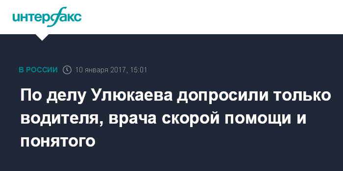 Москва. 10 января. INTERFAX.RU - По делу бывшего министра экономического развития РФ Алексея Улюкаева, обвиняемого в получении взятки в $2 млн, в качестве свидетелей были допрошены только водитель, врач скорой помощи и понятой, сообщила журналистам адвокат Улюкаева Лариса Каштанова.