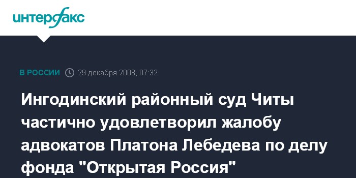 Суд обязал следователей устранить нарушения. Как ранее сообщалось, П.Лебедев утверждал в судах, что его эпатировали в Читу именно по этому делу, "а затем оно исчезло". Жалоба адвокатов по делу с фондом "Открытая Россия" рассматривалась Ингодинским судом в пятый раз.