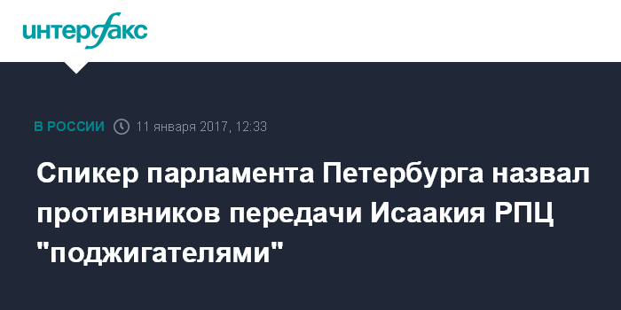 Спикер парламента Петербурга назвал противников передачи Исаакия РПЦ "поджигателями"