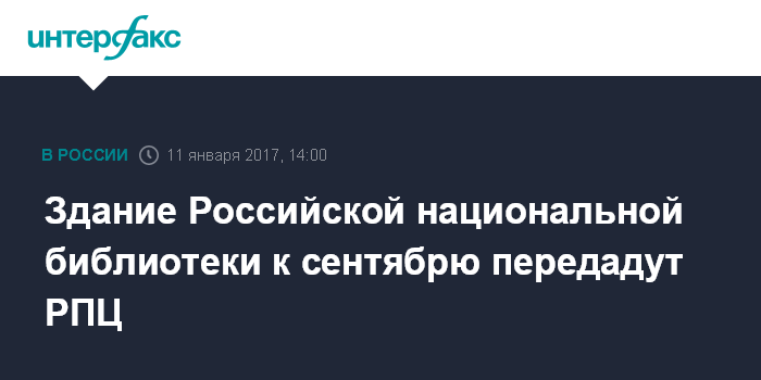 "Здание передается РПЦ. Конечно, это не такой острый вопрос, как с Исаакием, потому что это здание раньше принадлежало церкви. Но там очень ценный фонд, там хранятся личные библиотеки. Есть распоряжение правительства: передать здание в течение 5 месяцев с момента ввода в эксплуатации второй очереди (РНБ - ИФ). Если строители сроки не срывают, то к 1 сентября мы должны здание передать", - сказал Вислый. Он напомнил, что распоряжение правительства о передаче здания по закону о возвращении церковного имущества было подписано в 2015 году.