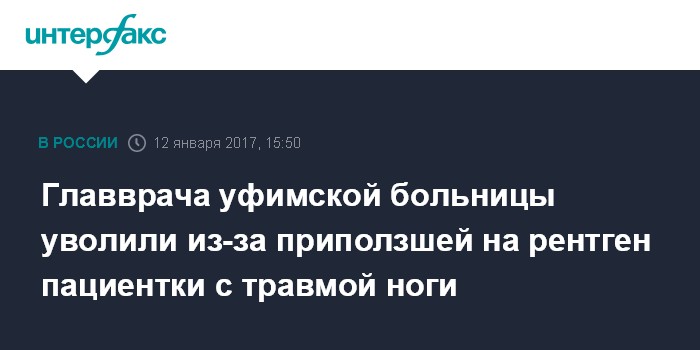 Главврача уфимской больницы уволили из-за приползшей на рентген пациентки с травмой ноги