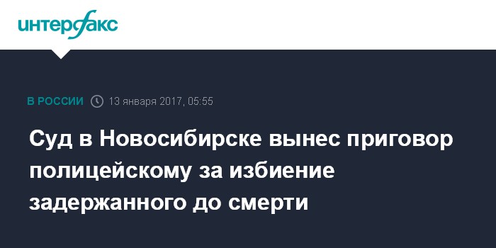 Суд в Новосибирске вынес приговор полицейскому за избиение задержанного до смерти