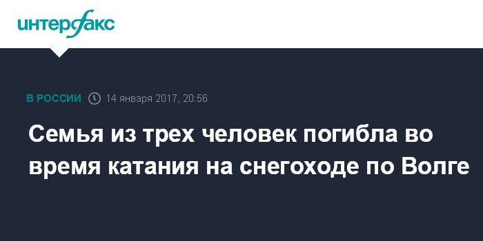 Семья из трех человек погибла во время катания на снегоходе по Волге
