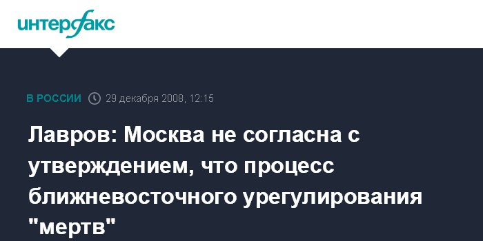 Москва. 29 декабря. INTERFAX.RU - Несмотря на обострение ситуации на Ближнем Востоке, процесс ближневосточного урегулирования, начатый в Аннаполисе (США), должен быть продолжен, заявил глава МИД РФ Сергей Лавров.