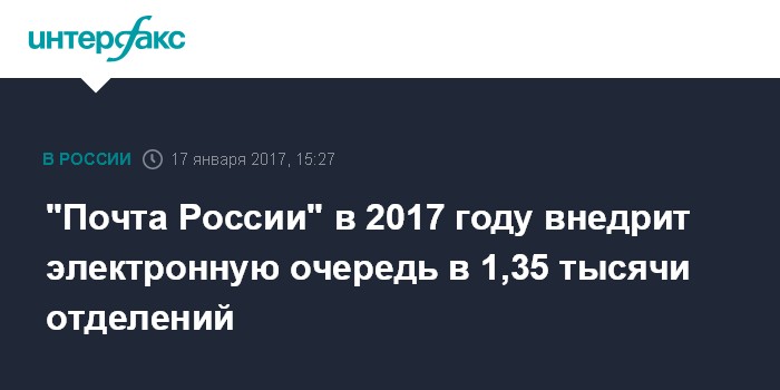 "Почта России" в 2017 году внедрит электронную очередь в 1,35 тысячи отделений