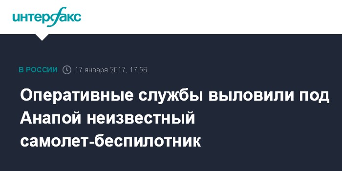 Москва. 17 января. INTERFAX.RU - Беспилотный летательный аппарат обнаружен в Черном море в окрестностях Анапы, сообщили агентству "Интерфакс" в оперативных службах Краснодарского края во вторник.