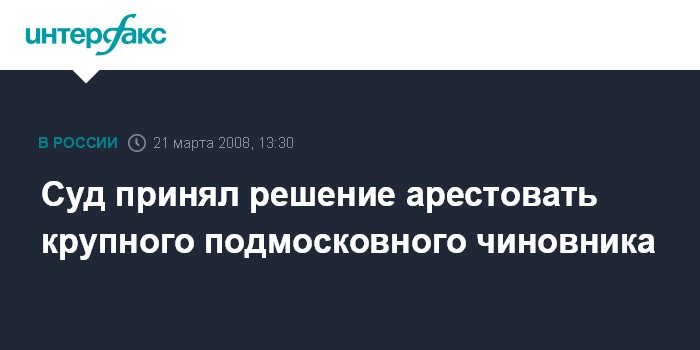 Москва. 21 марта. INTERFAX.RU - Симоновский суд Москвы сегодня принял решение арестовать на время предварительного следствия первого замминистра потребительского рынка и услуг правительства Московской области Евгения Клевакина.