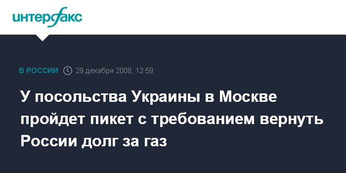 У посольства Украины в Москве пройдет пикет с требованием вернуть России долг за газ