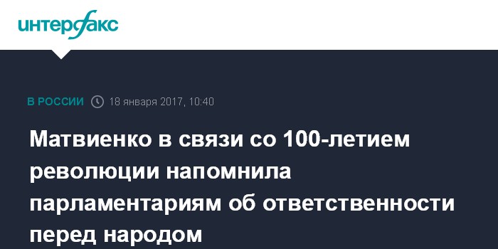 Москва. 18 января. INTERFAX.RU - В столетнюю годовщину Февральской и Октябрьской революций необходимо снова подумать об ответственности власти перед народом и создании прочных государственных основ, считает спикер Совета Федерации Валентина Матвиенко.