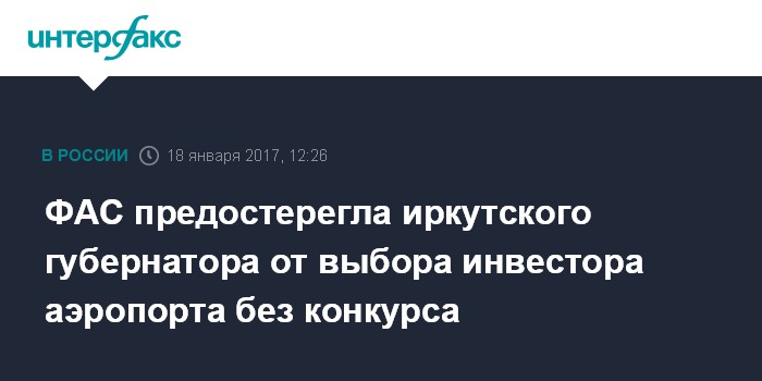 ФАС предостерегла иркутского губернатора от выбора инвестора аэропорта без конкурса