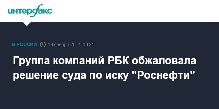 Группа компаний РБК обжаловала решение суда по иску "Роснефти"
