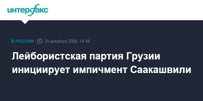 Москва. 29 декабря. INTERFAX.RU - Лейбористская партия Грузии начинает сбор подписей парламентариев с требованием импичмента президента страны Михаила Саакашвили. Как заявил на пресс-конференции в понедельник лидер партии Шалва Нателашвили, представление на импичмент президента будет направлено в парламент еще до нового года.