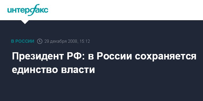 Москва. 29 декабря. INTERFAX.RU - Несмотря на глобальные вызовы, с которыми сталкивается Россия, в стране удается сохранить единство власти, заявил президент Дмитрий Медведев.