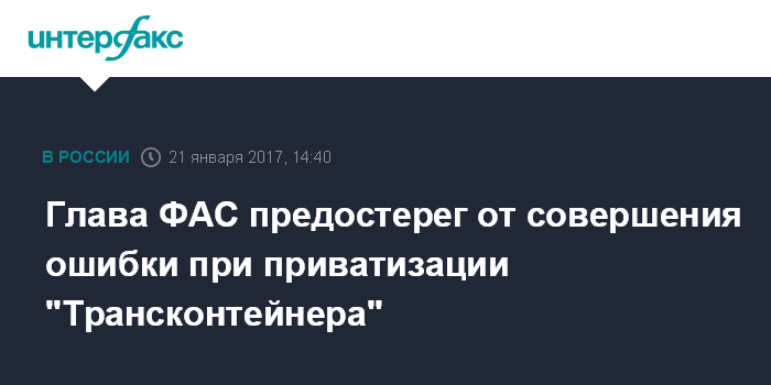 Глава ФАС предостерег от совершения ошибки при приватизации "Трансконтейнера"