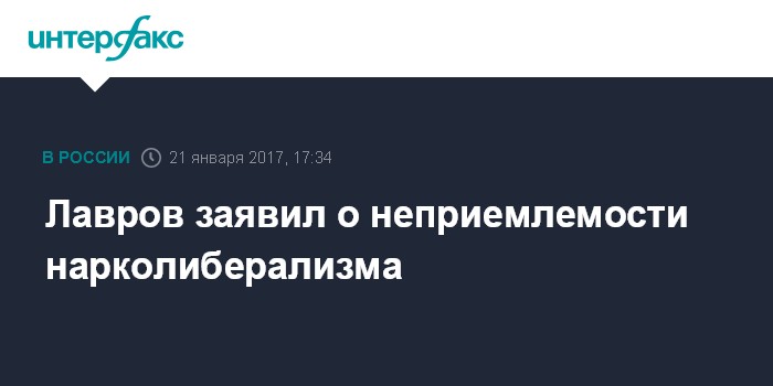 Москва. 21 января. INTERFAX.RU - Глава министерства иностранных дел РФ Сергей Лавров одобрил работу созданного в России Национального антинаркотического союза (НАС) и осудил практикуемые в некоторых странах чересчур либеральные подходы к проблеме.
