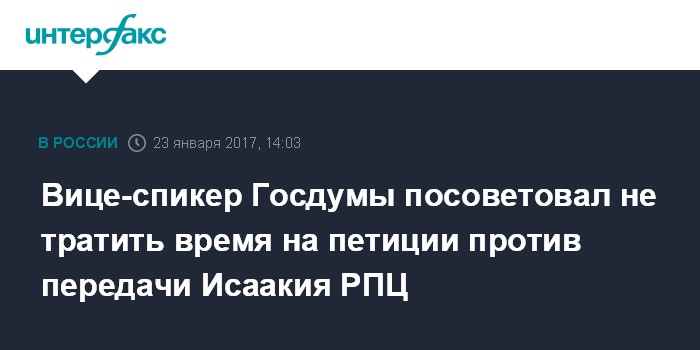 Вице-спикер Госдумы посоветовал не тратить время на петиции против передачи Исаакия РПЦ