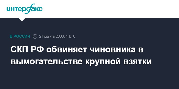 СКП РФ обвиняет чиновника в вымогательстве крупной взятки
