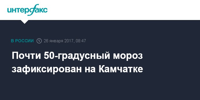 Почти 50-градусный мороз зафиксирован на Камчатке