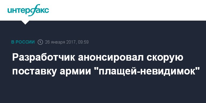 Разработчик анонсировал скорую поставку армии "плащей-невидимок"