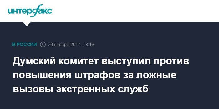 Москва. 26 января. INTERFAX.RU - Комитет Госдумы по госстроительству и законодательству в четверг рекомендовал Думе отклонить в первом чтении законопроект, повышающий до 5 тысяч рублей штраф за ложный вызов экстренных служб.