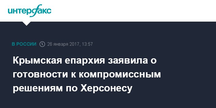 Москва. 26 января. INTERFAX.RU - Симферопольская и Крымская епархия Украинской православной церкви Московского патриархата заявила о готовности искать компромиссные решения относительно судьбы объектов музея-заповедника "Херсонес Таврический".