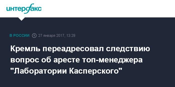 Кремль переадресовал следствию вопрос об аресте топ-менеджера "Лаборатории Касперского"