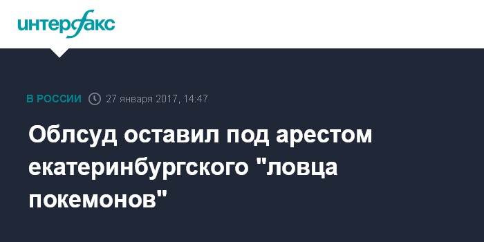 Облсуд оставил под арестом екатеринбургского "ловца покемонов"