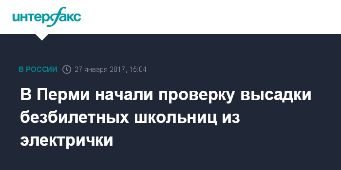 В свою очередь замдиректора по пассажирским перевозкам ОАО "Пермская пригородная компания" Антонида Каракулова добавила, что инцидент произошел 23 января и по нему проводится внутренняя проверка. "Да, мы в курсе (этой ситуации - ИФ). Мы сейчас разбираемся и к концу дня выпустим официальный пресс-релиз", - сказала она.